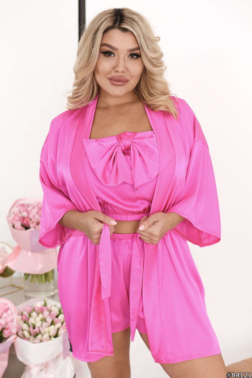 Халат з поясом у комплекті, Топ прилаштований на гумці зверху та з низу, без гоління, спереду великий бант.