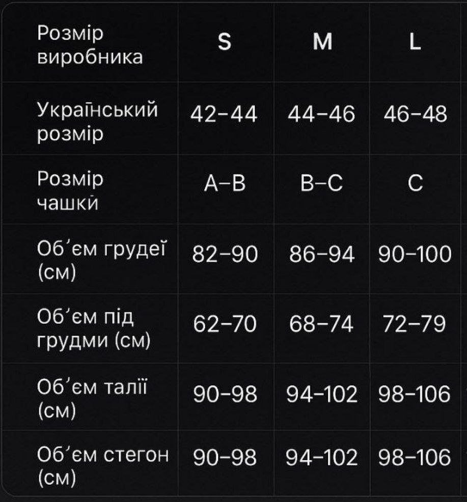 Розмір : s, m, l. (таблиця замірів є на фото)