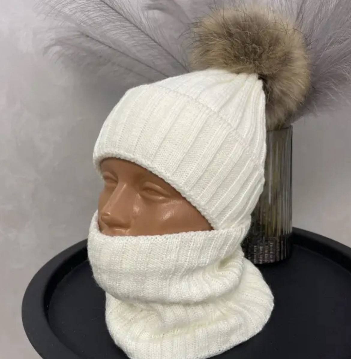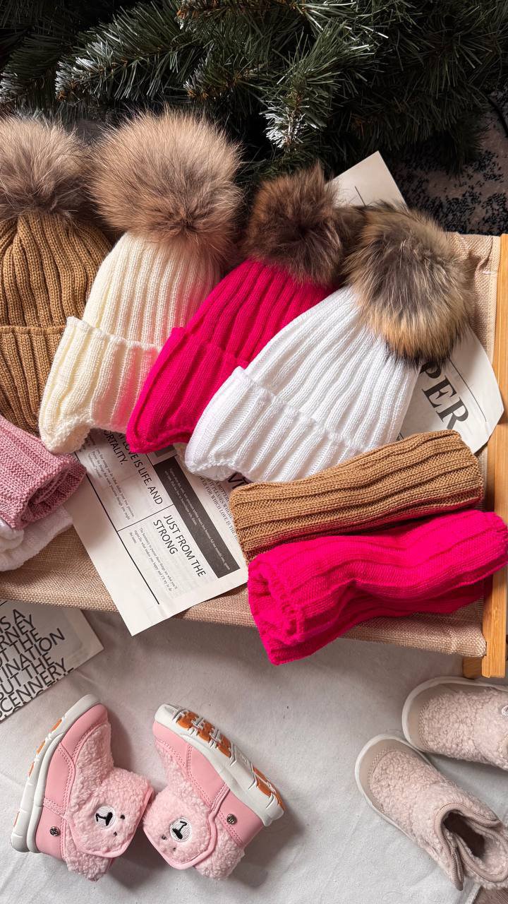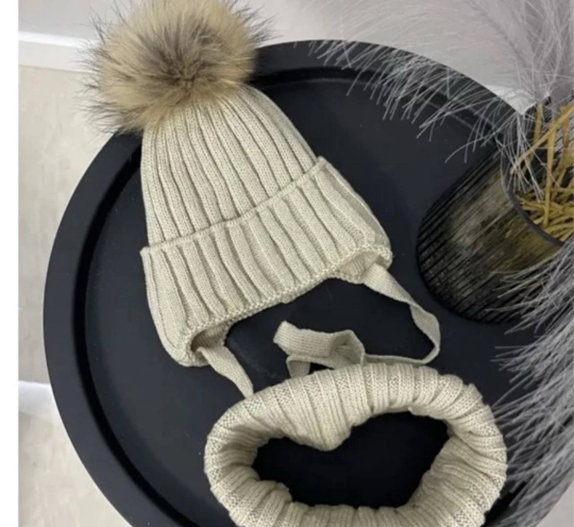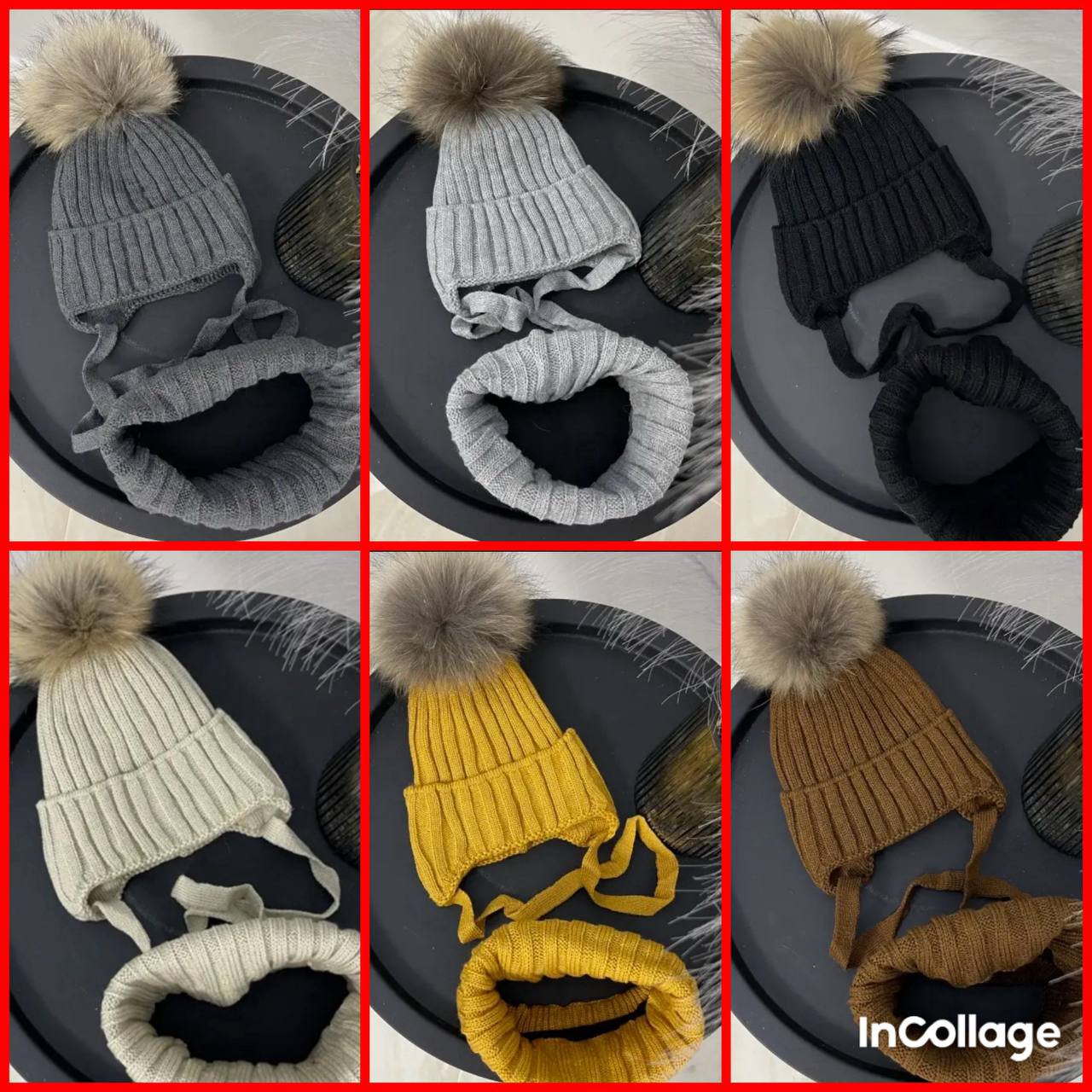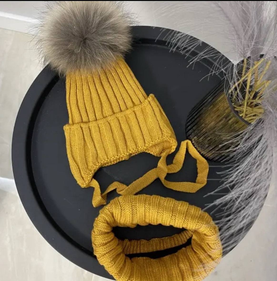 ☃️зимовий набір з1 помпоном з натурального хутра єнота💛💙
