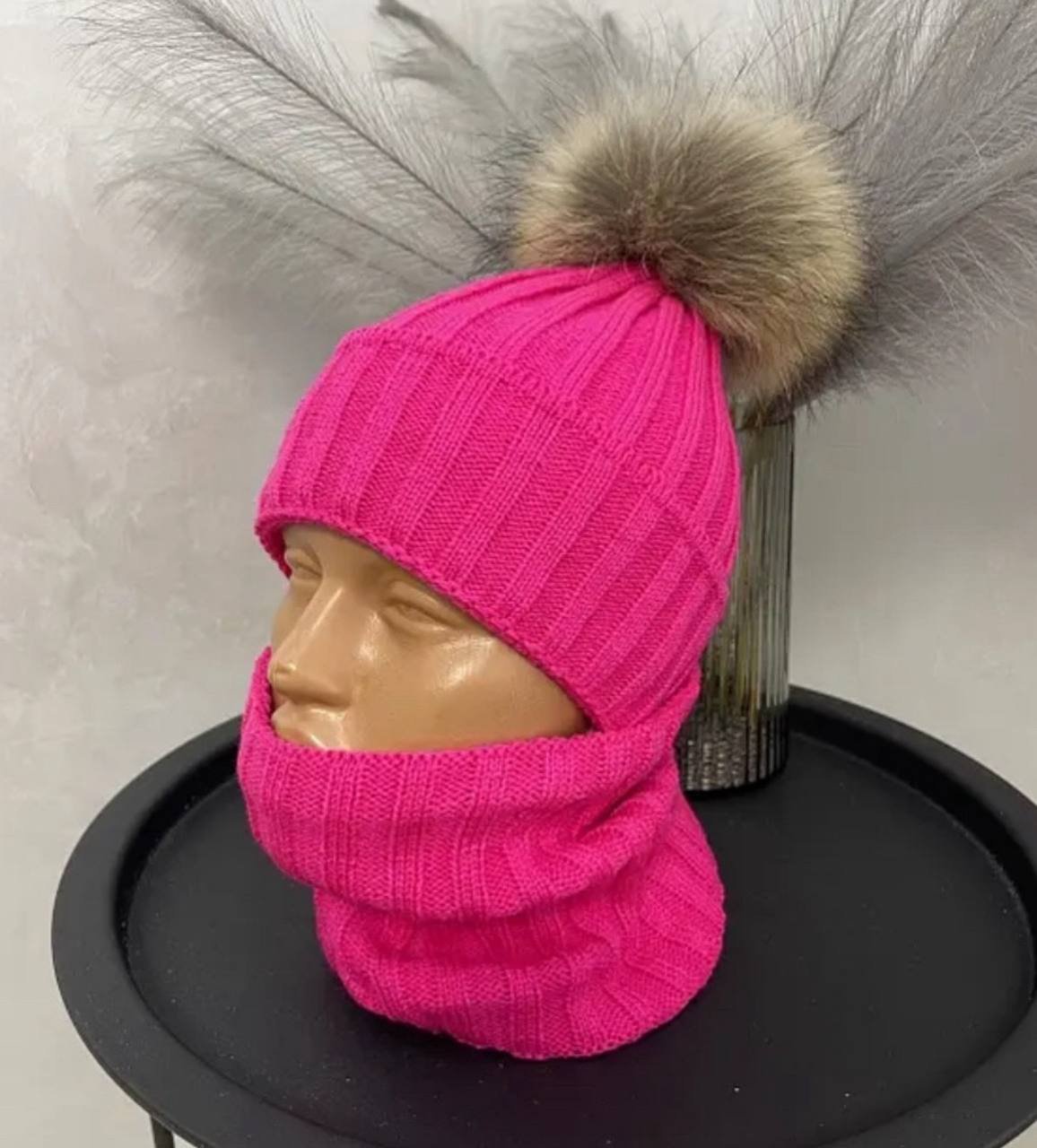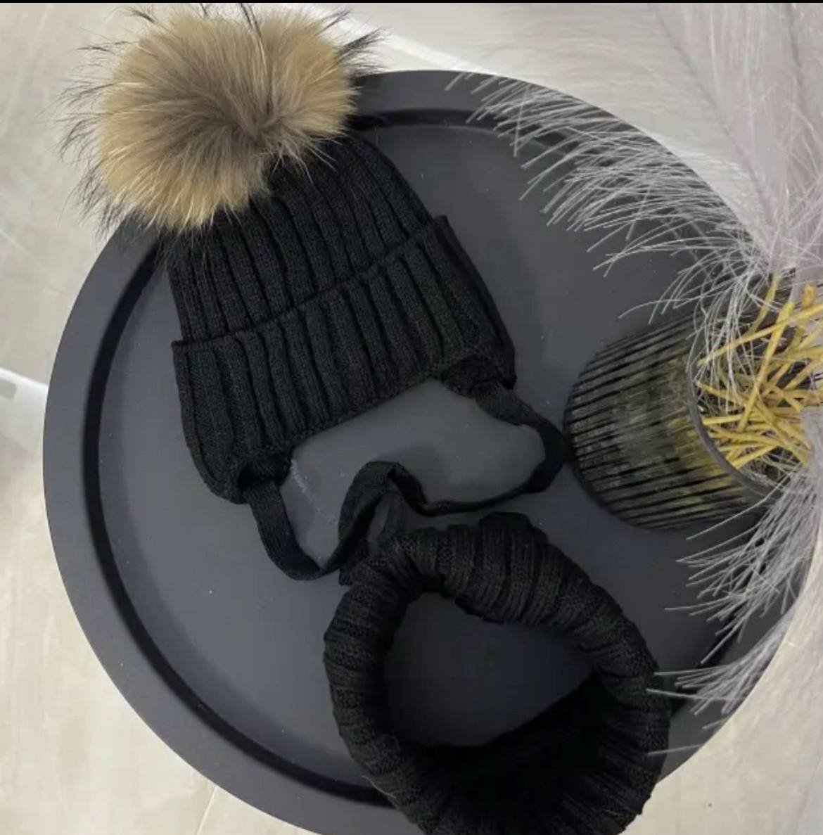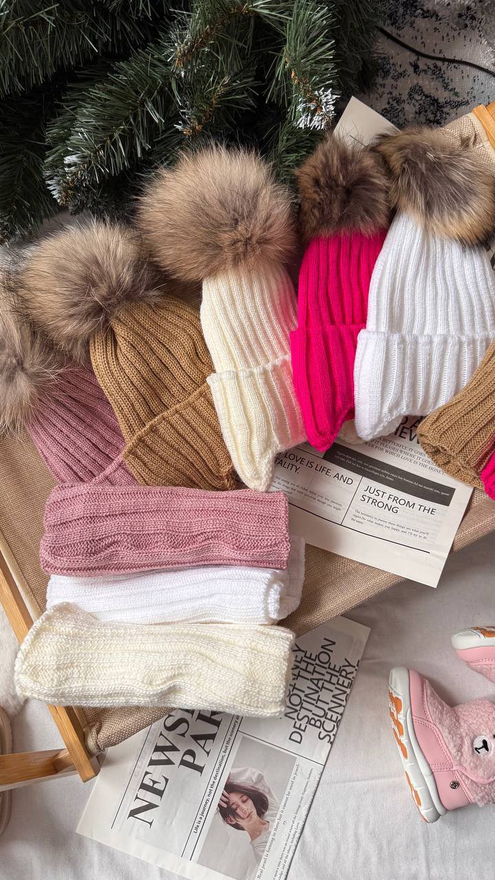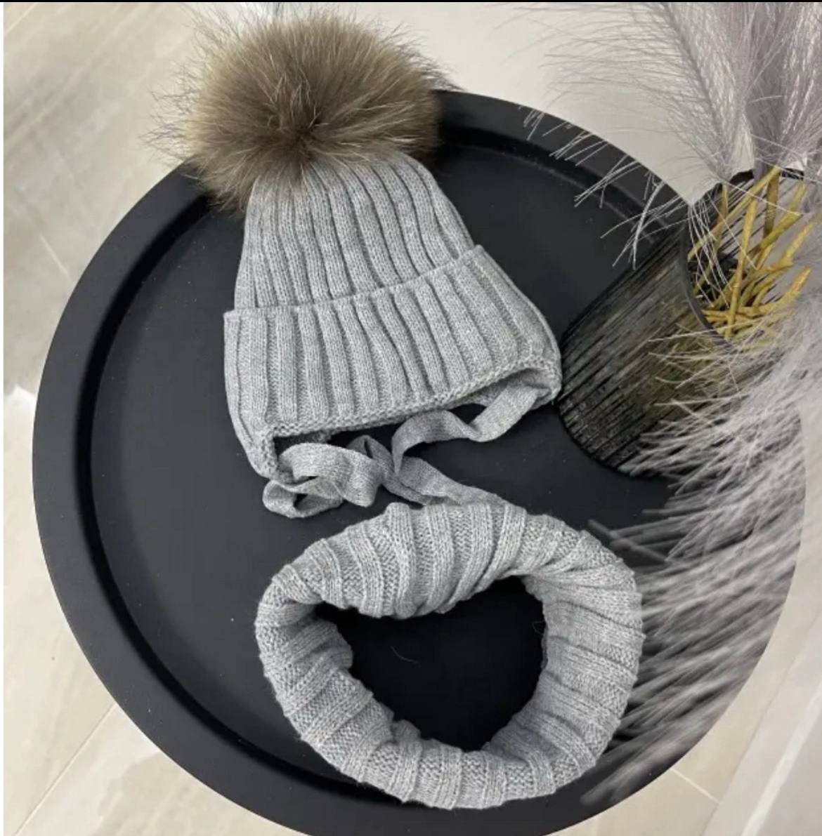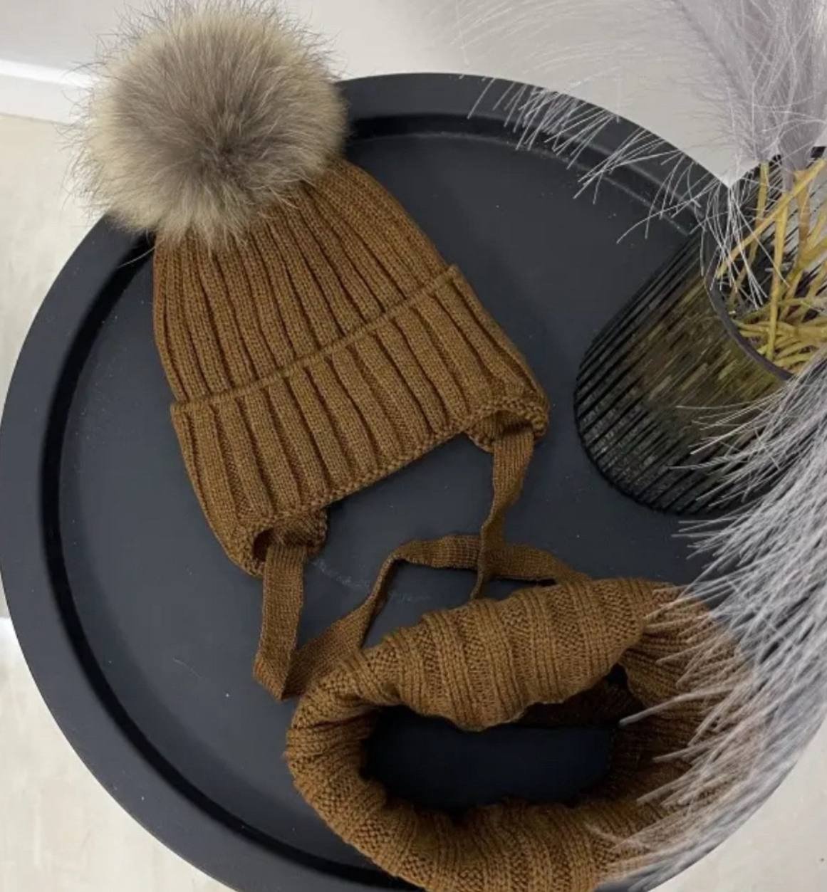 ☃️зимовий набір з1 помпоном з натурального хутра єнота💛💙