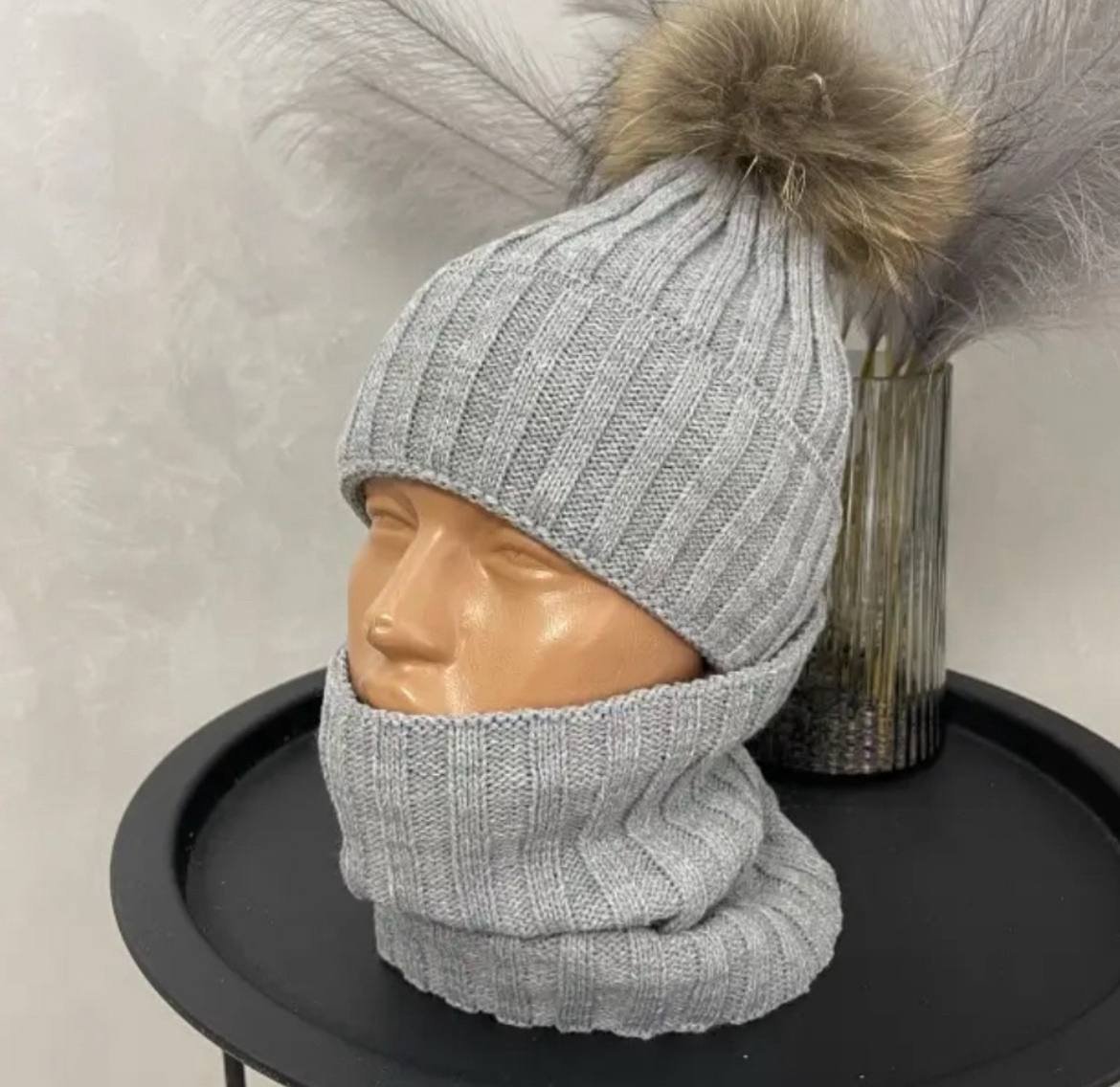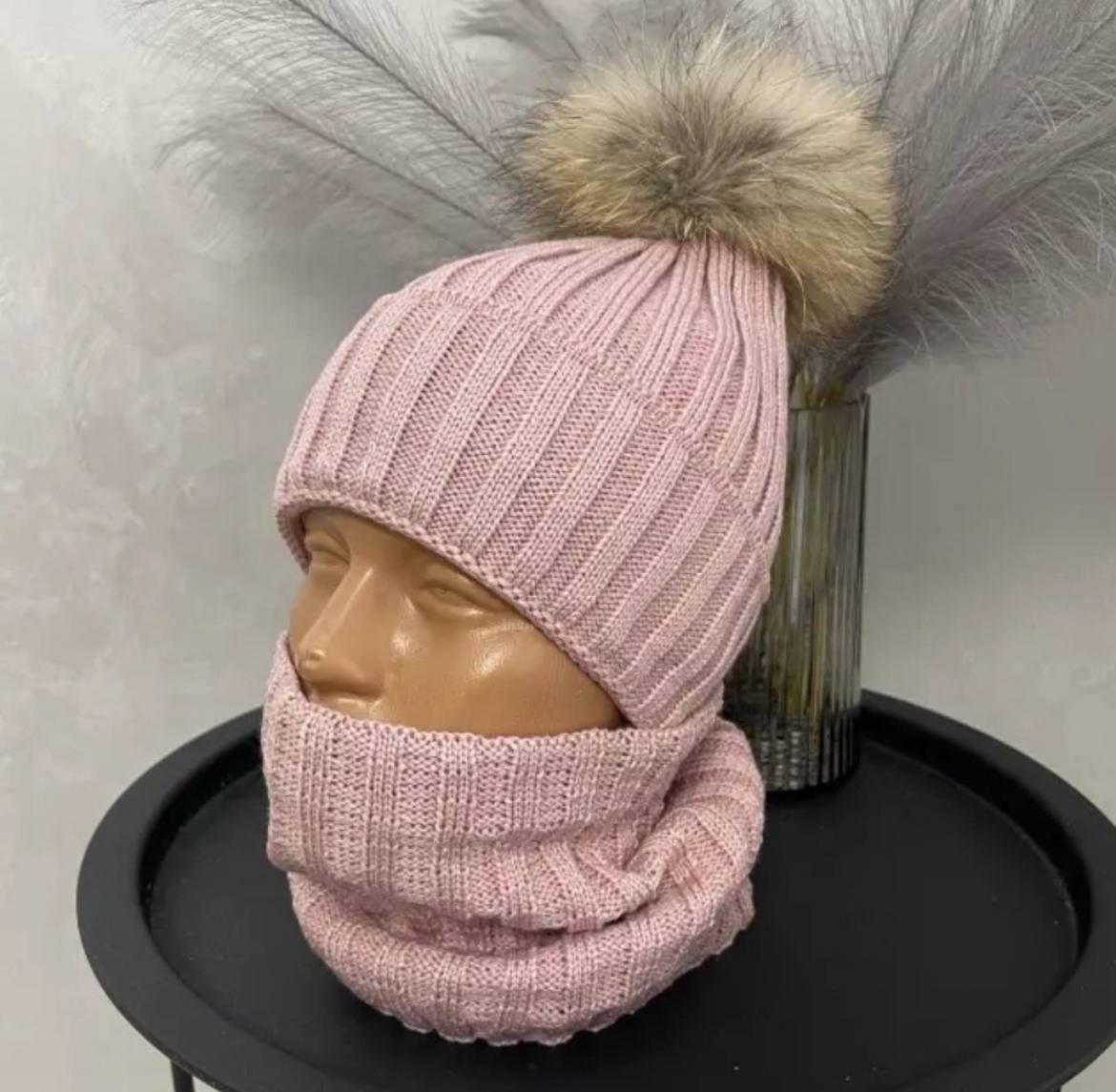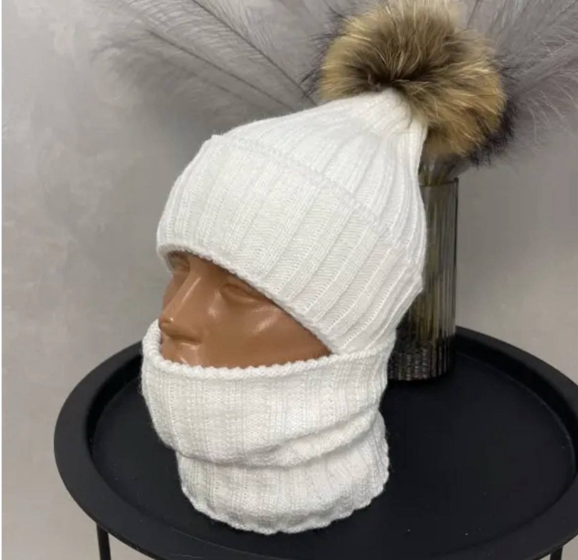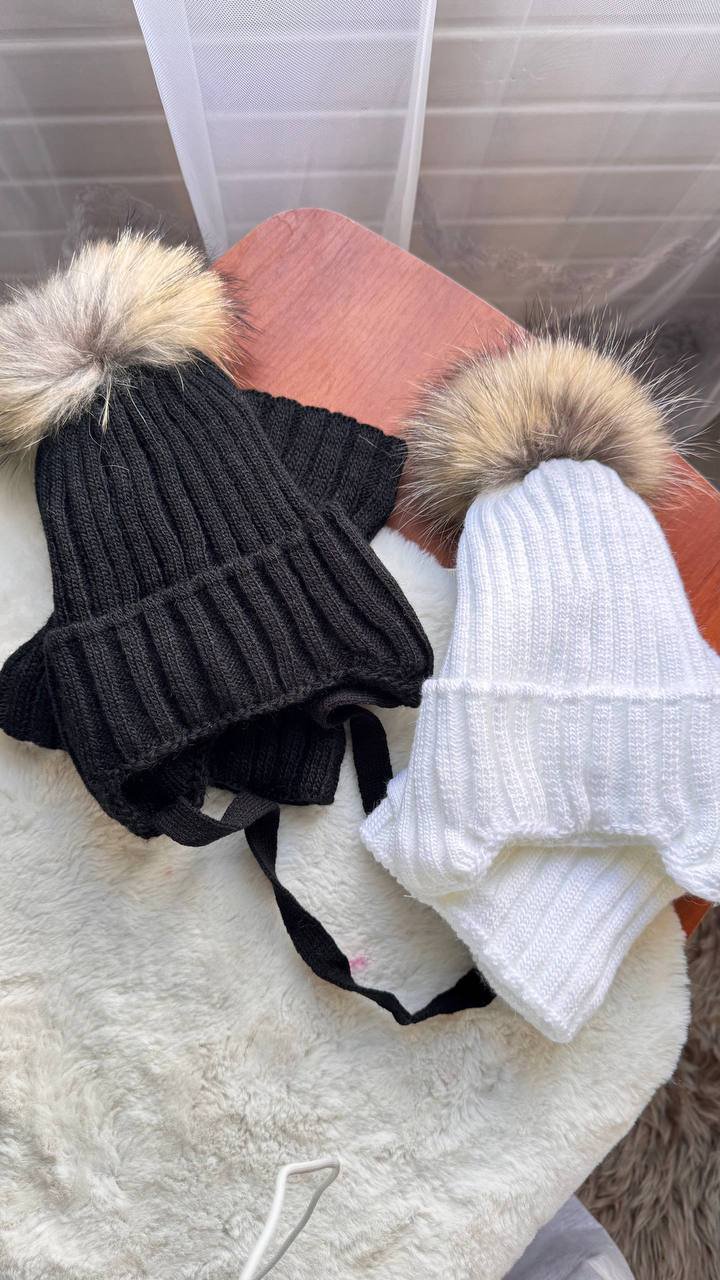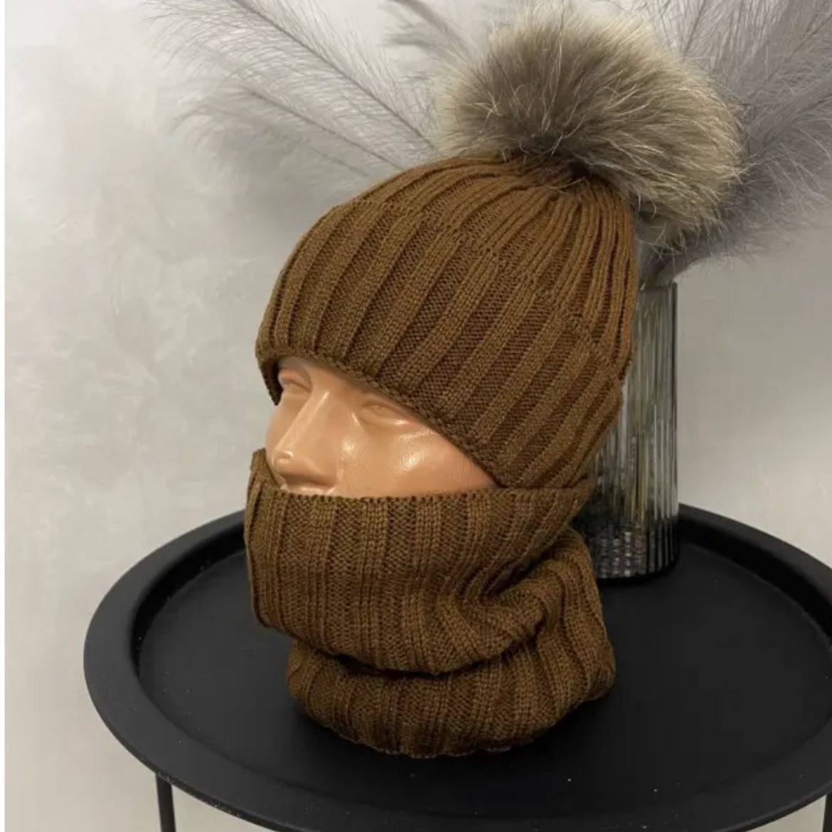 ☃️зимовий набір з1 помпоном з натурального хутра єнота💛💙